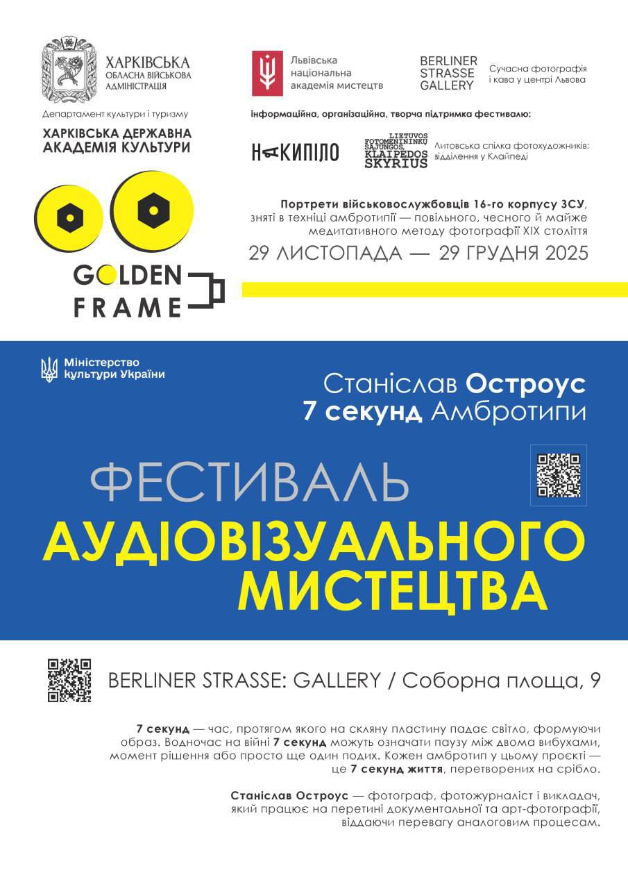 29 листопада 2025 р., напередодні відкриття Міжнародного арт-проєкту фестивалю аудіовізуального мистецтва "Golden Frame", у Львові розпочала роботу фотовиставка фотографа й фотожурналіста, викладача кафедри фотомистецтва та операторської майстерності Харківської державної академії культури Станіслава Остроуса під назвою «7 секунд. Амбротипи».