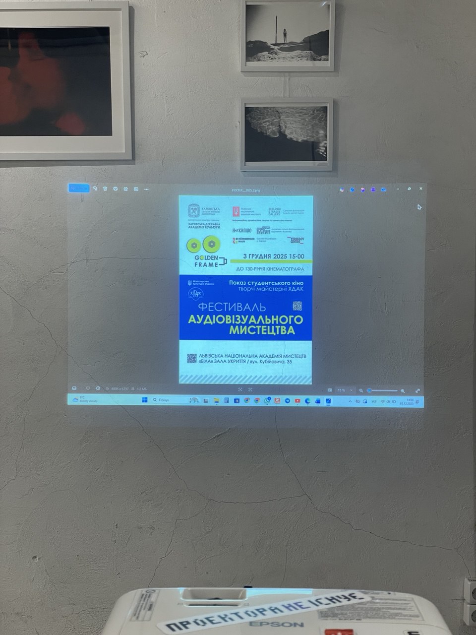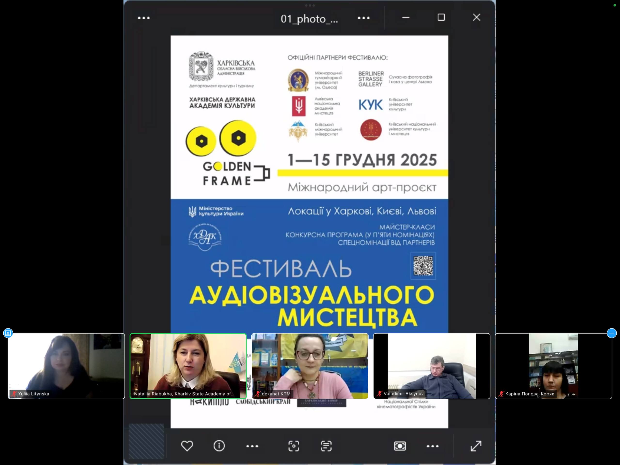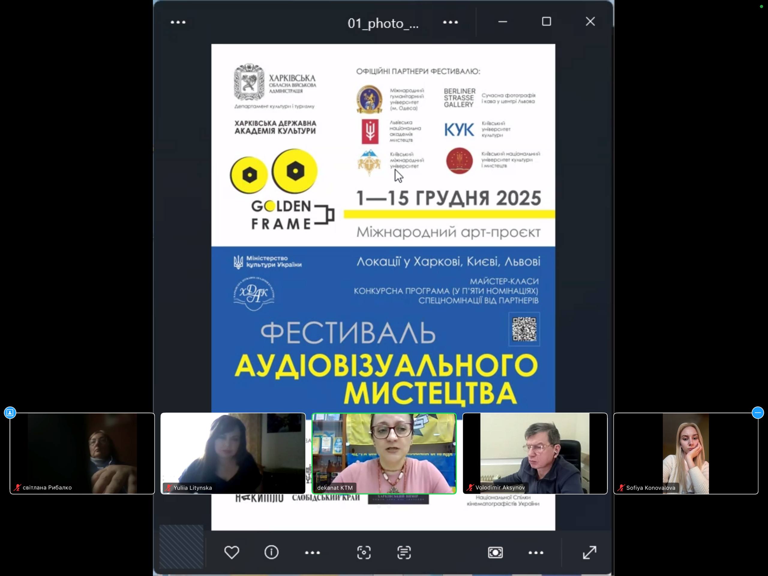 3 грудня 2025 року у Львівській національній академії мистецтв, яка є офіційним партнером Міжнародного артпроєкту «Фестиваль аудіовізуального мистецтва «GOLDEN FRAME’2025», відбувся показ студентських фільмів творчих майстерень факультету аудіовізуального мистецтва Харківської державної академії культури.