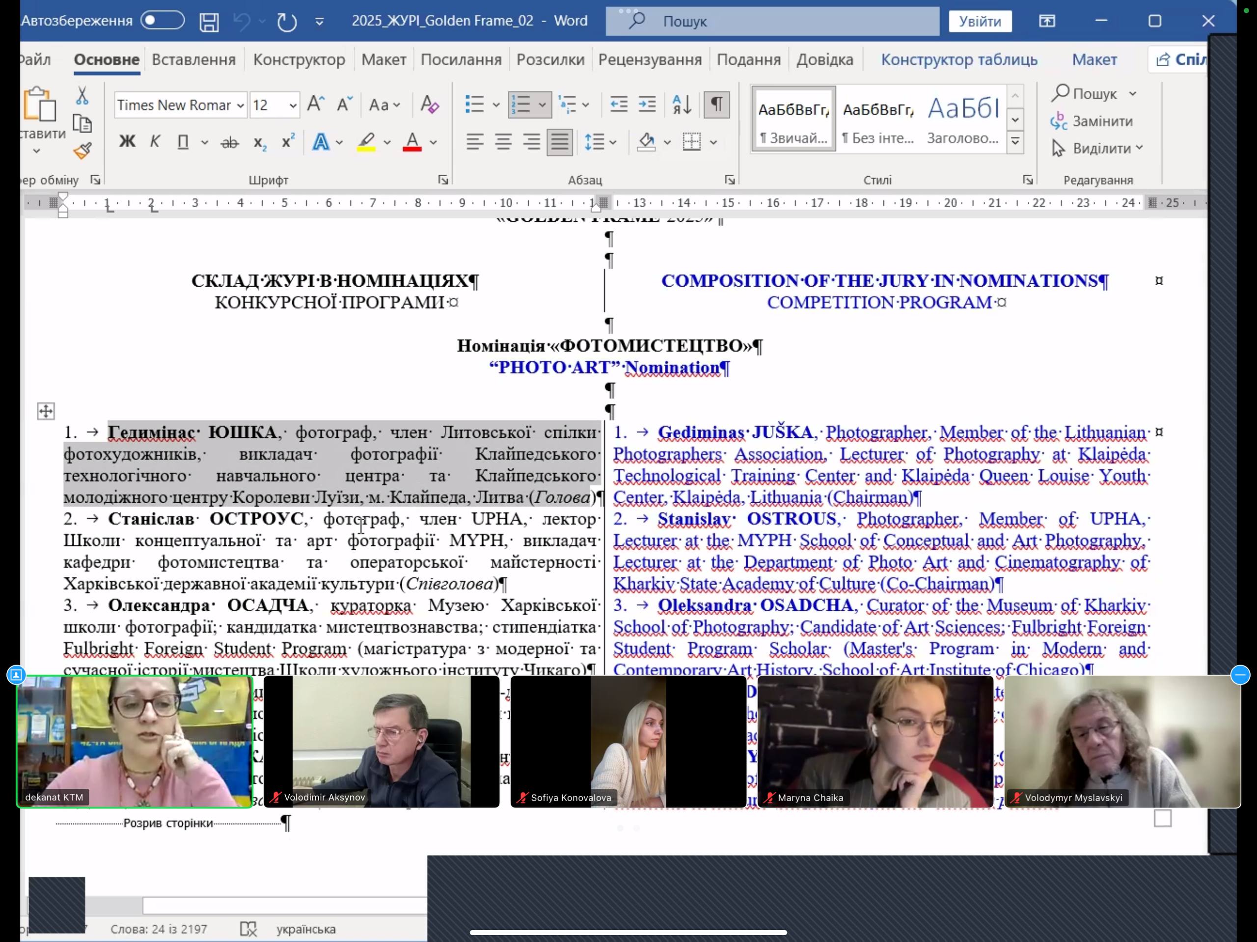 - Наталія Мархайчук – декан факультету аудіовізуального мистецтва, голова оргкомітету фестивалю;