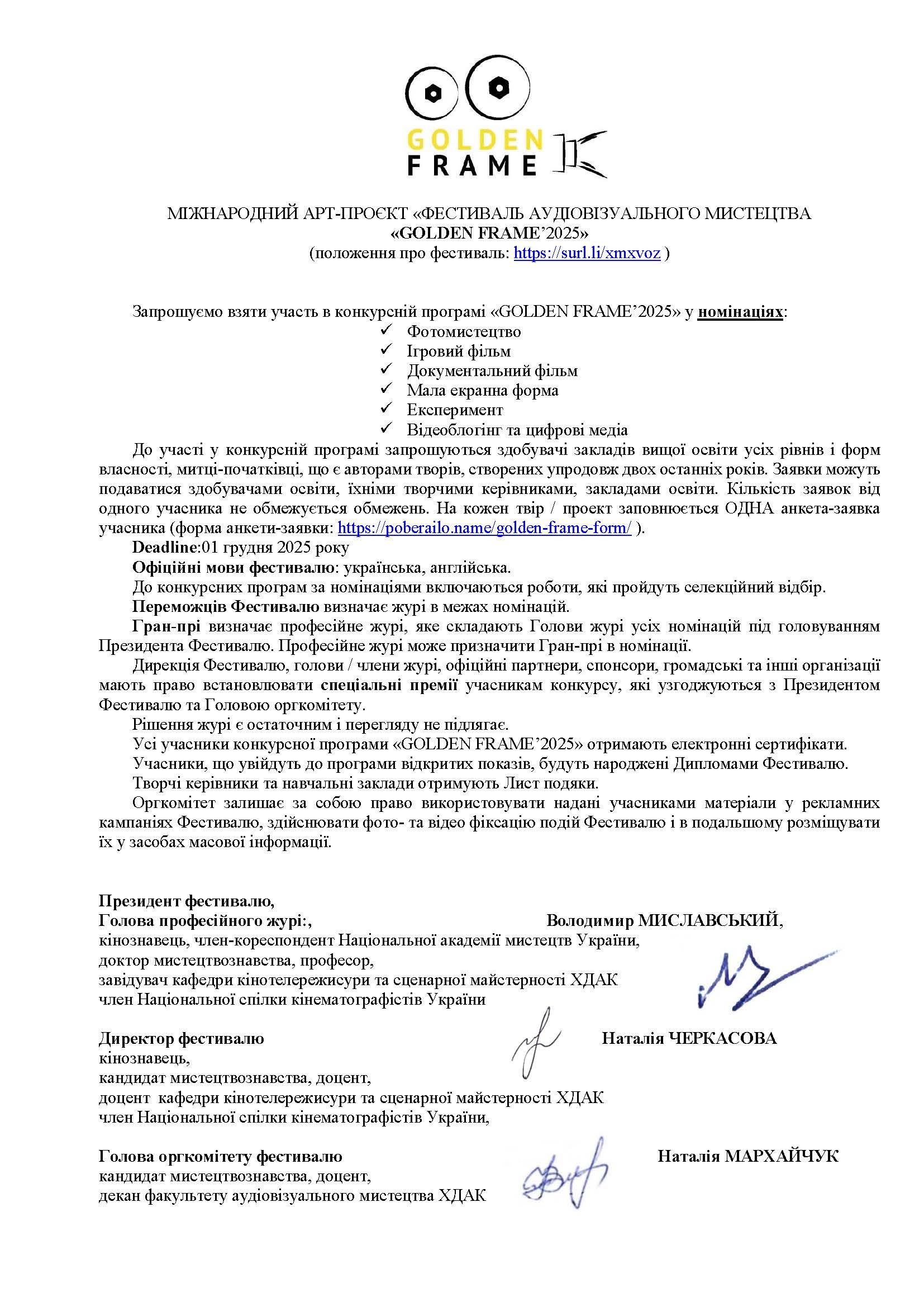 Golden Frame. Положення (укр.) / Golden Frame. Regulations (eng.)