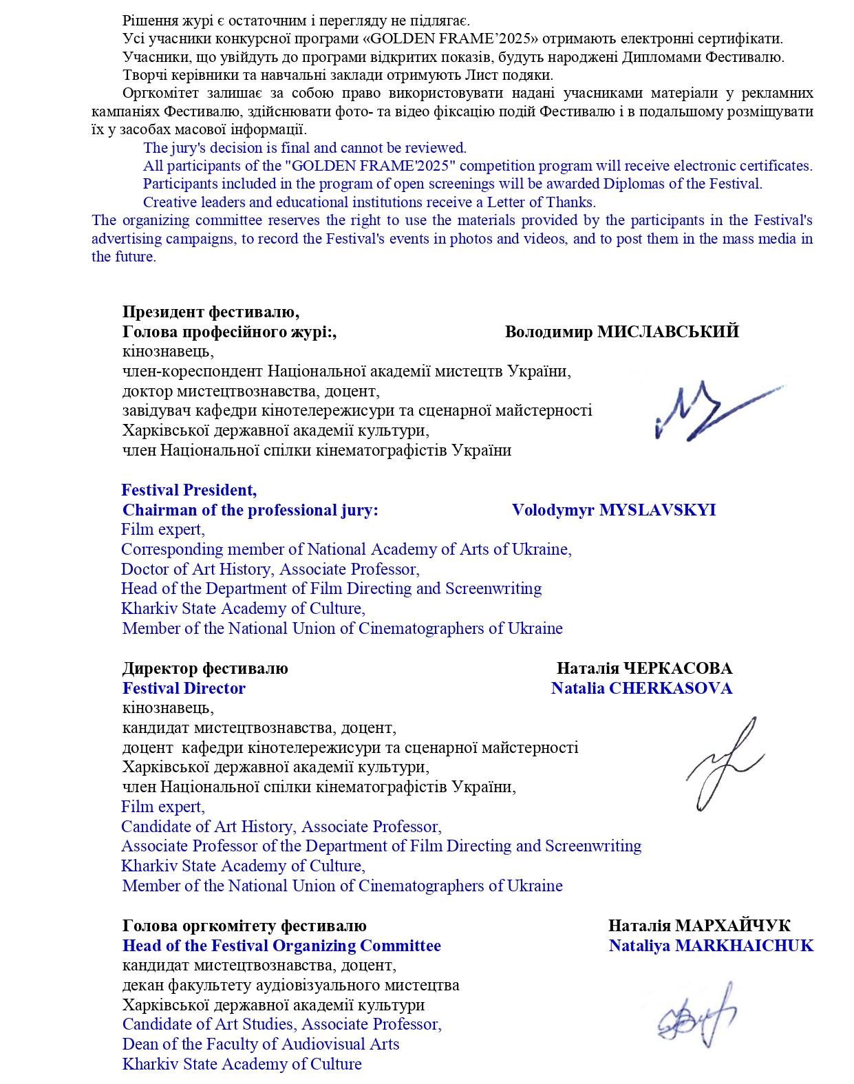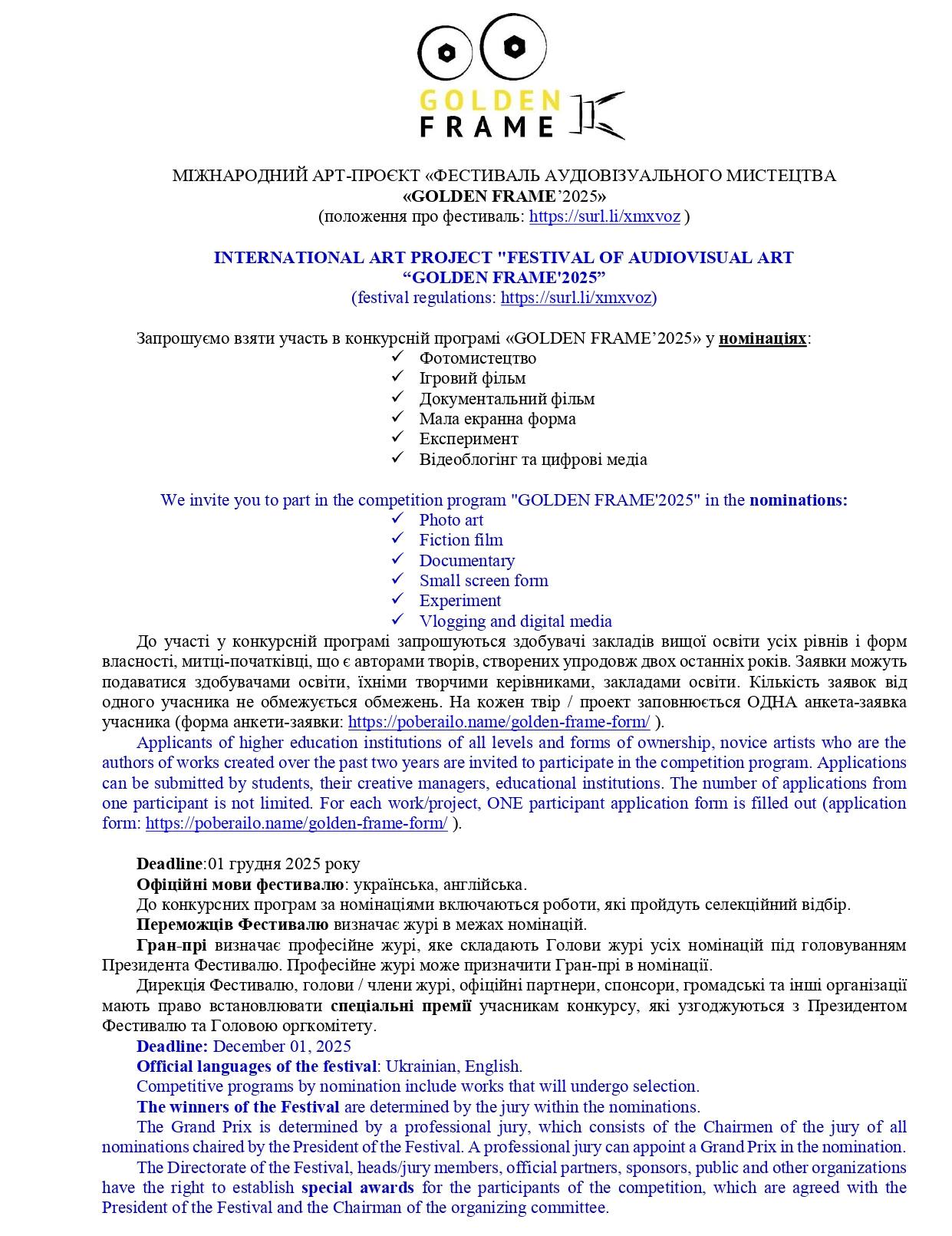 INTERNATIONAL ART PROJECT "AUDIOVISUAL ART FESTIVAL "GOLDEN FRAME"