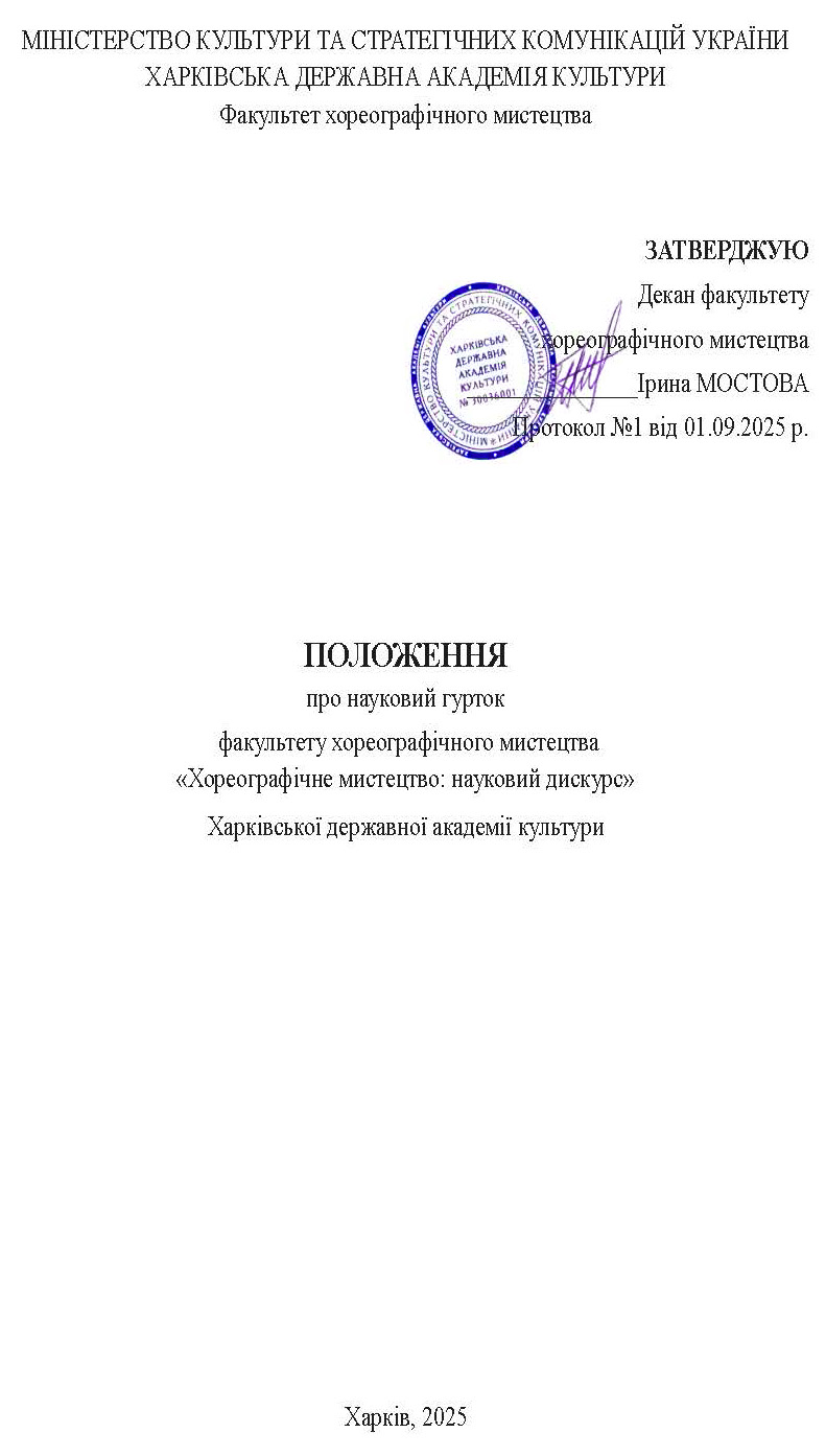 Положення про науковий гурток факультету хореографічного мистецтва «Хореографічне мистецтво: науковий дискурс» Харківської державної академії культури