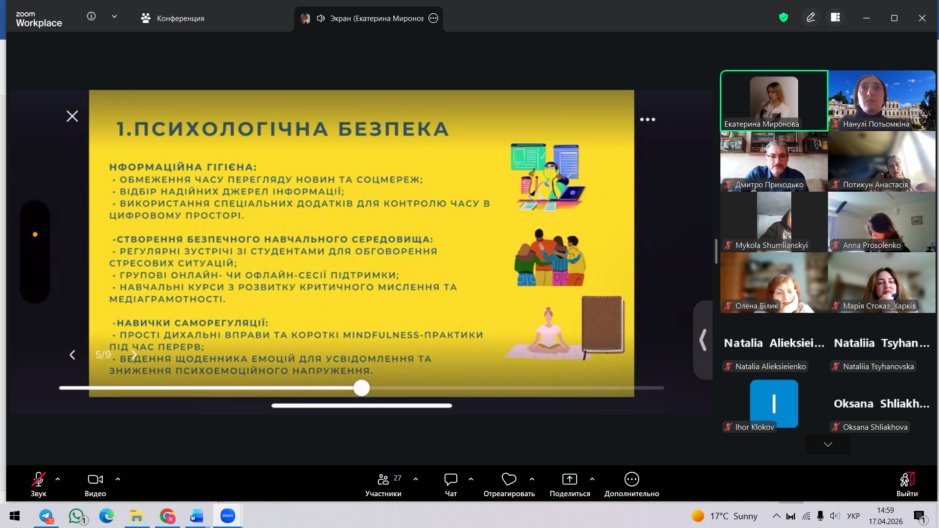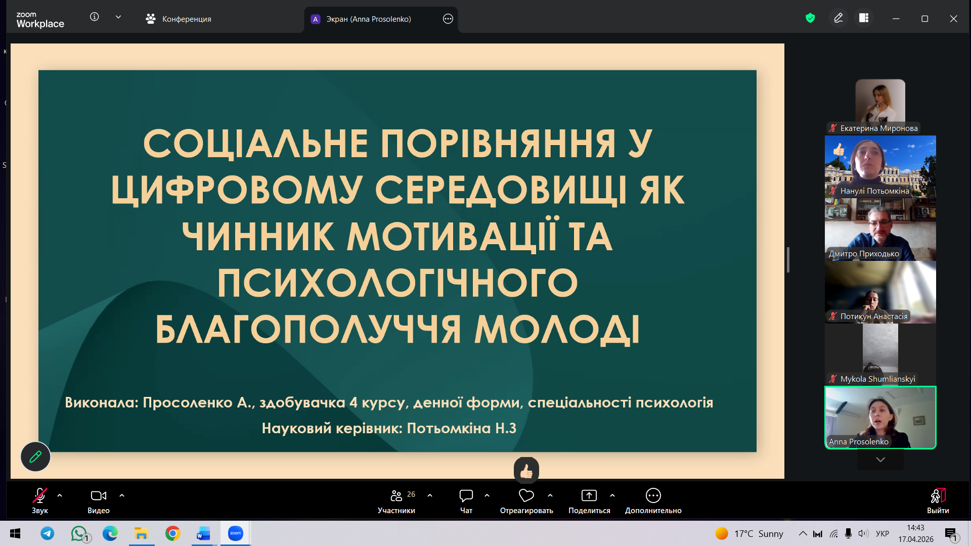 17 квітня 2026 р. відбулося засідання круглого столу «Збереження та відновлення психічного благополуччя особистості в сучаних умовах».
