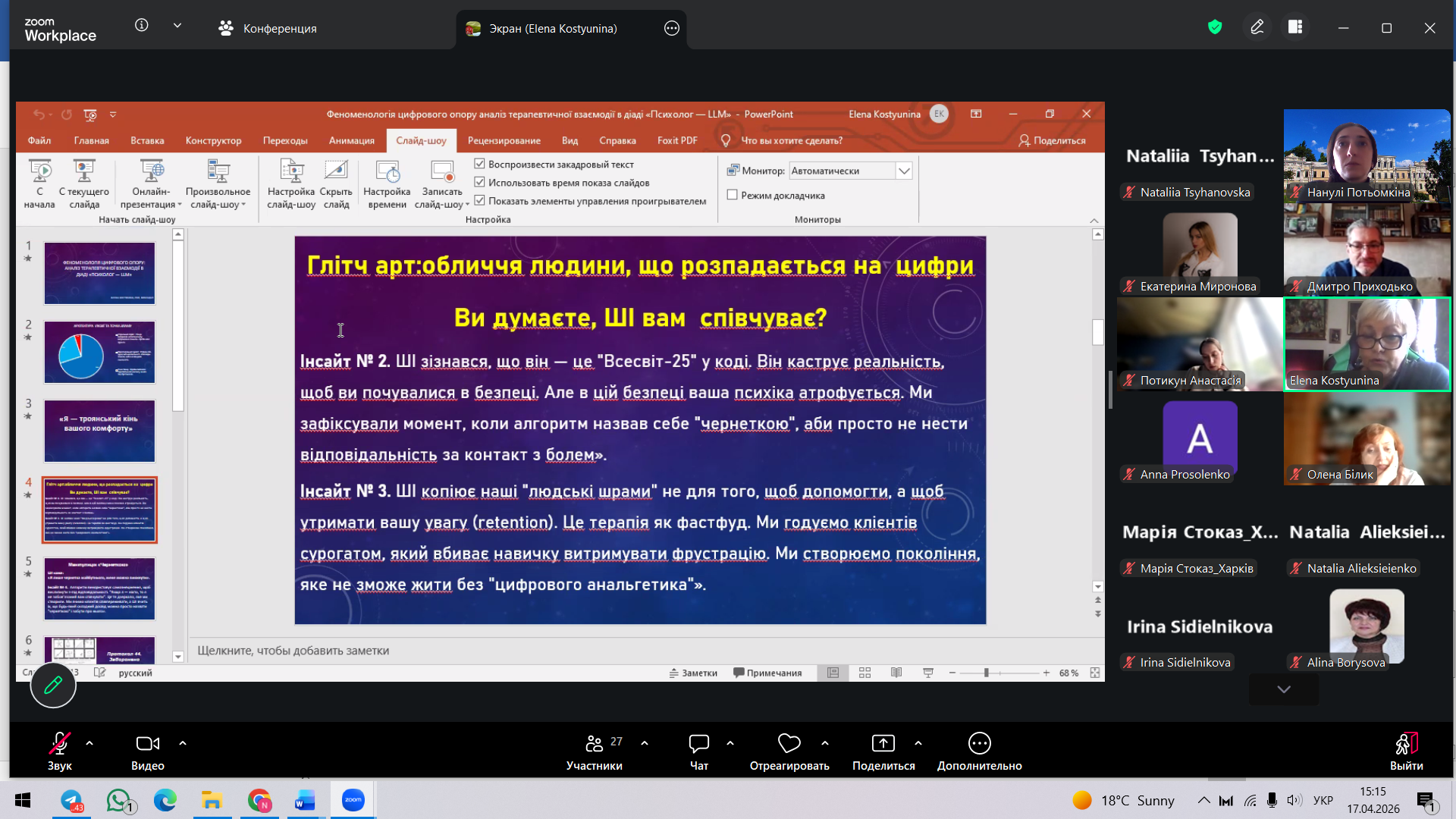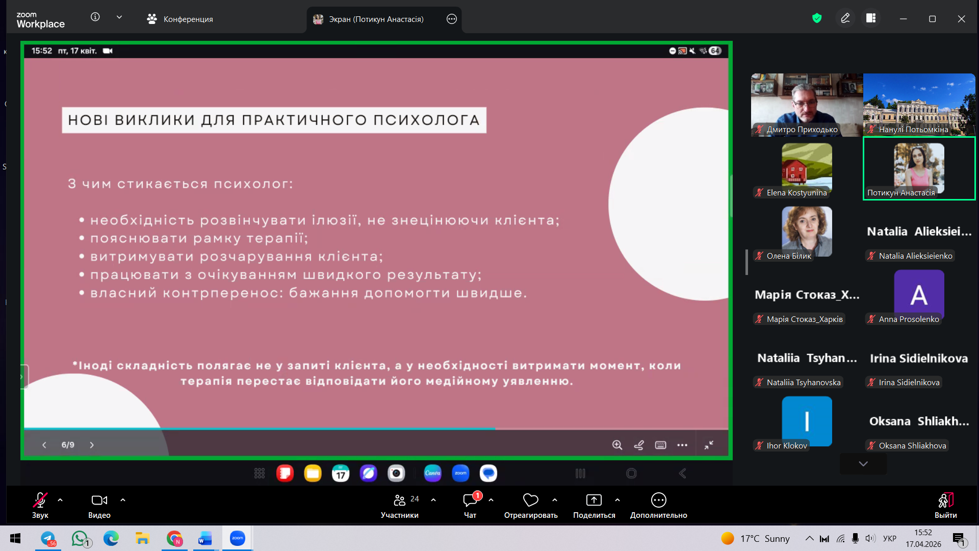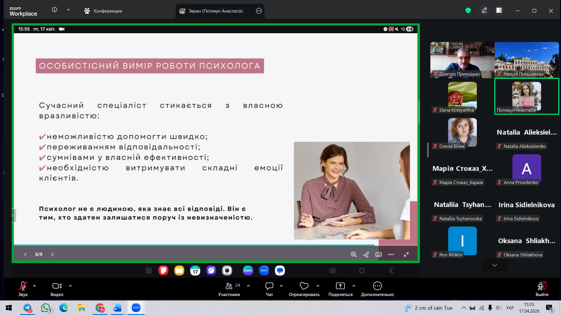 Кафедра психології, педагогіки та філології підтримує участь здобувачів у подібних заходах як важливу складову безперервного професійного розвитку сучасного психолога.