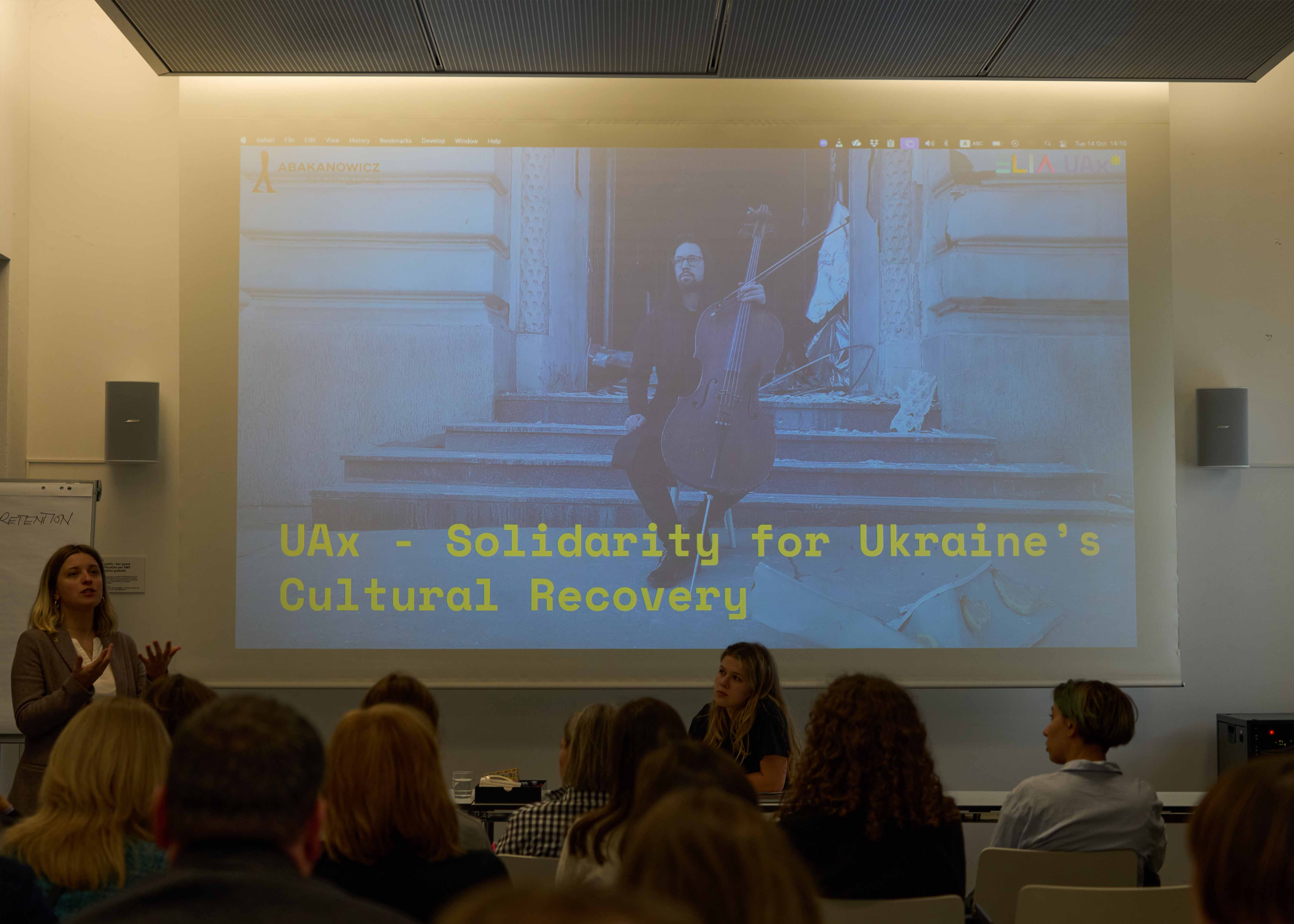 * «The role of the arts in building dialogue and fostering humanitarian action» (Роль мистецтва у створенні діалогу та сприянні гуманітарним діям). Під час цієї дискусії було розглянуто потенціал мистецтва як засобу примирення, комунікації та соціальної злагоди в часи глобальних криз.