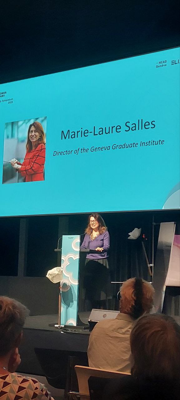 Після перформансу прозвучала відкриваюча лекція “Power With: A Wake-Up Call”, яку виголосила директорка Geneva Graduate Institute, Марі-Лор Салль (Marie-Laure Salles). У своєму виступі вона закликала мистецьких керівників переосмислити саме поняття влади — не як «влада над», а як «влада разом». Вона наголосила, що в часи глобальної турбулентності, воєн і цифрових трансформацій саме мистецькі заклади покликані відновлювати баланс у суспільстві, бути простором довіри, діалогу та емпатії. «Мистецтво — це не втеча від реальності, а її глибше проживання. Лише через чутливість до іншого ми здатні будувати майбутнє, що тримається не на страху, а на співпричетності», — зазначила вона.