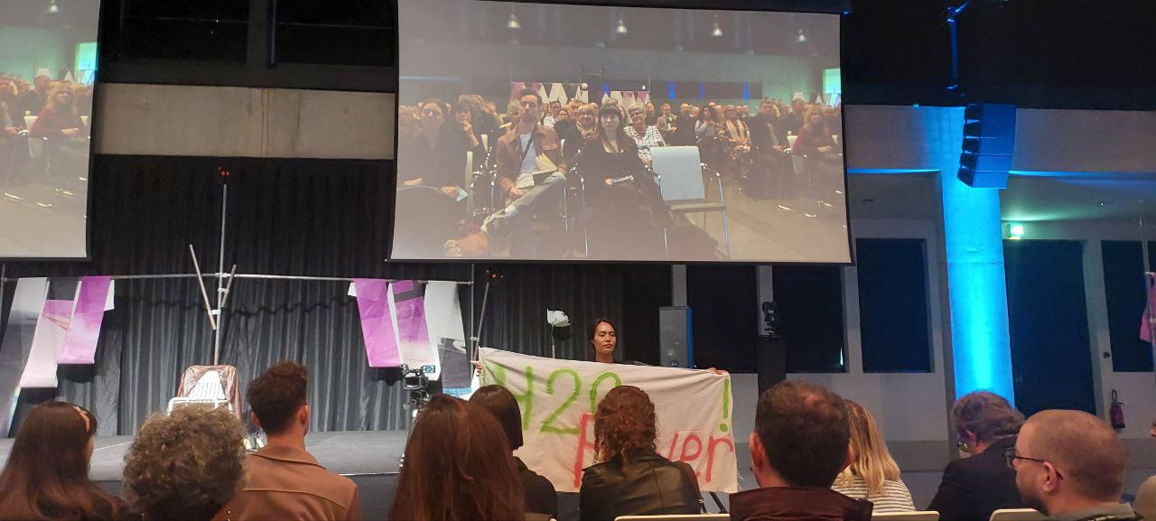 Перший день симпозіуму розпочався з емоційно насиченої події, що задала тон усьому подальшому обговоренню — перформансу “H2O – POWER!”, створеного студенткою факультету візуального мистецтва HEAD – Genève Прією Марою Ланфранкі (Priya Mara Lanfranchi).