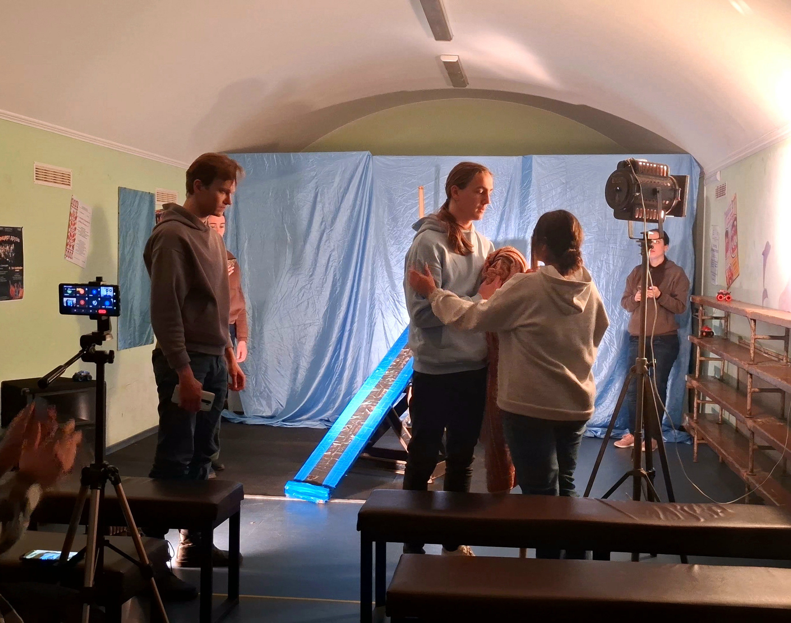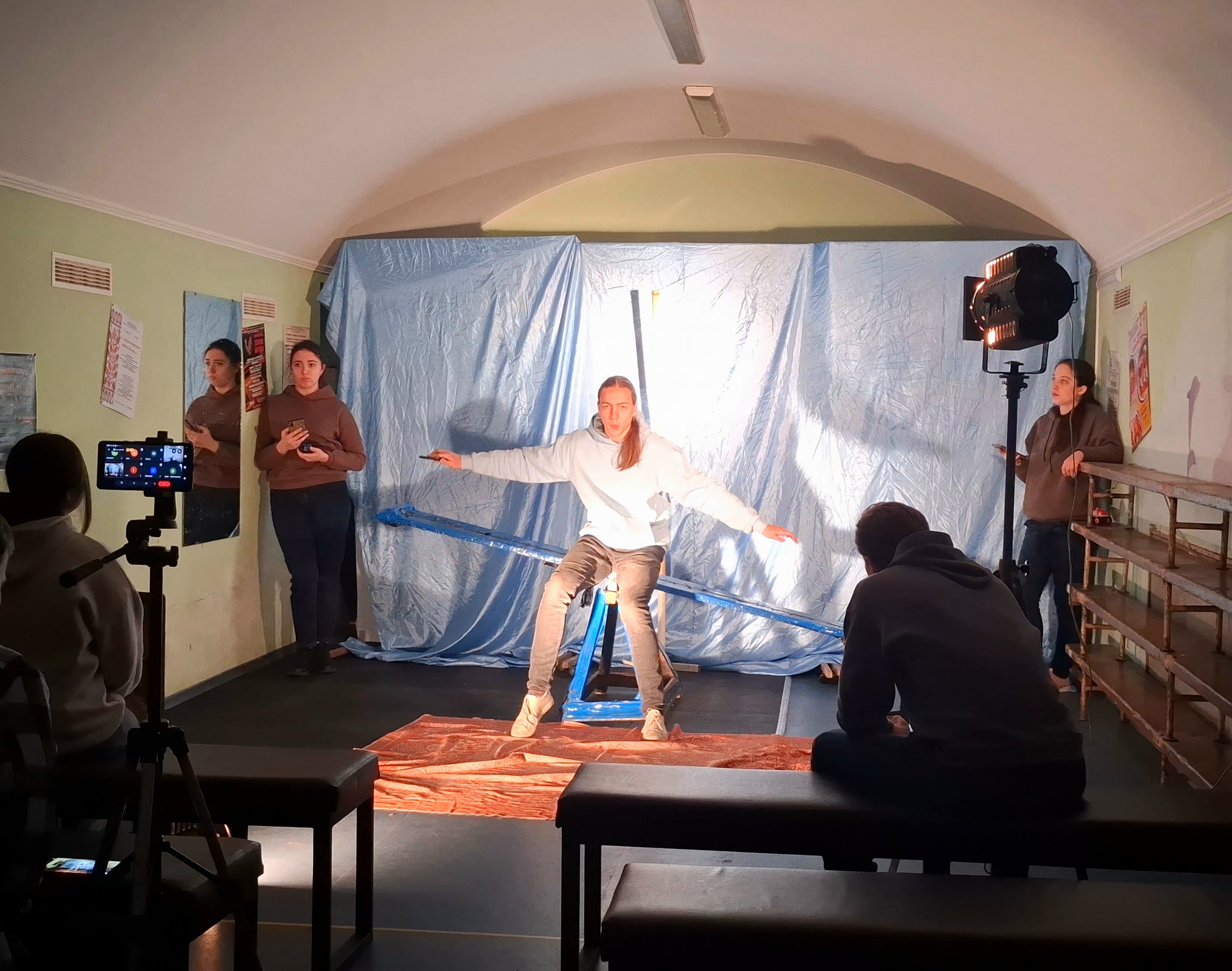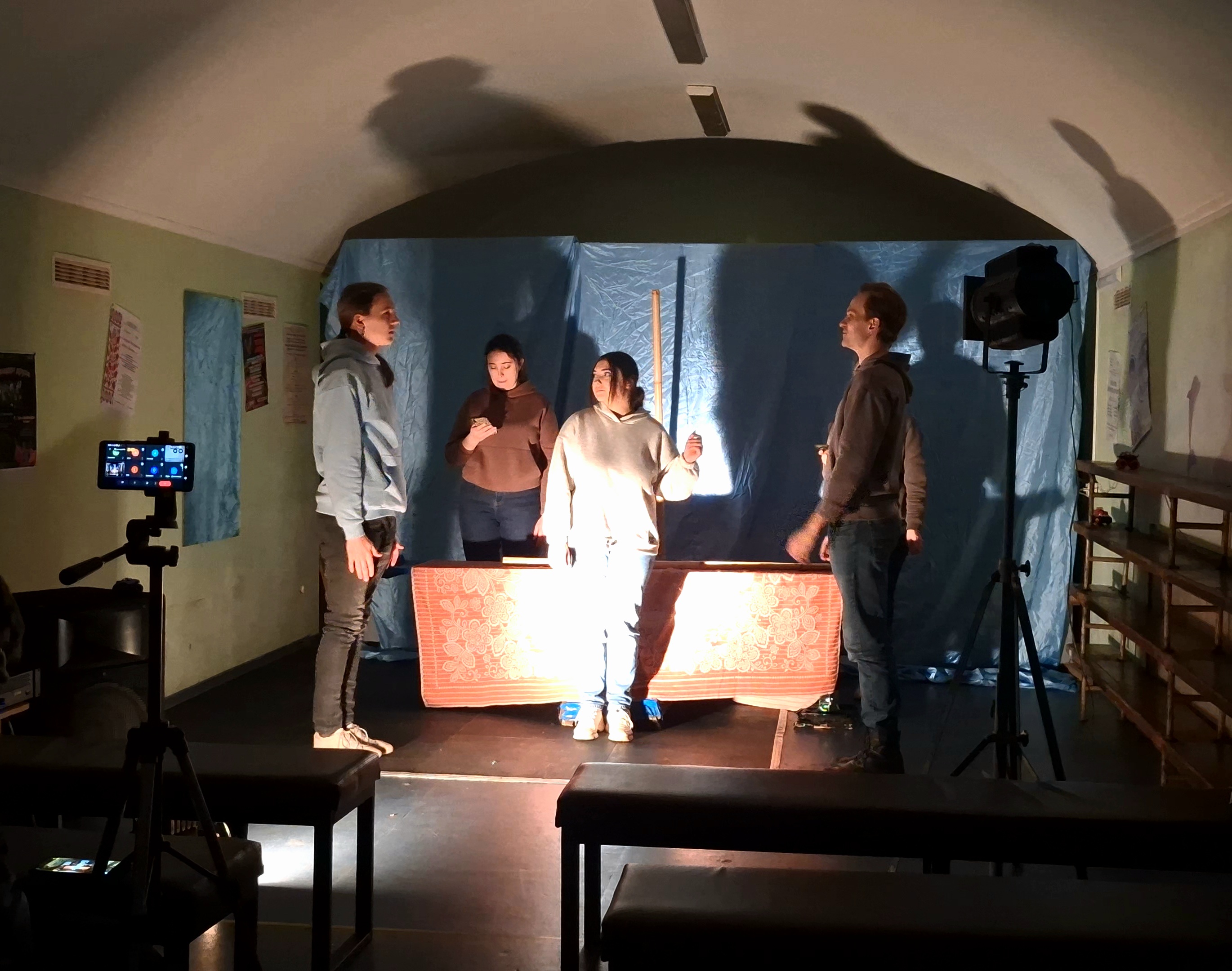 Ми працювали у форматі бліц-вистави: за 5-6 репетицій шукали мізансцени, структуру показу та спосіб розкрити текст у межах ескізу. Робота була інтенсивною й цінною – доводилося паралельно презентувати матеріал, захищати концепцію та доводити життєздатність самого формату.