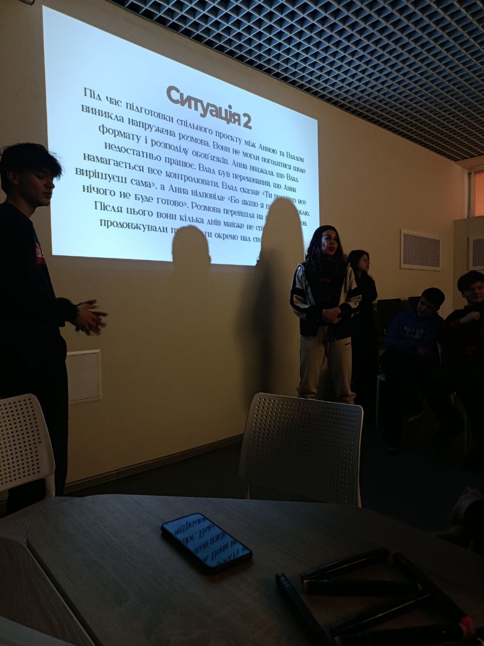 Після вступної частини розпочалися виступи учасників круглого столу. Розмаїття тем і форм їх презентації – відео- та фотопрезентації, майстер-класи, демонстрація архівних матеріалів – перетворили захід не лише на відкриту платформу для глибоких педагогічних роздумів професіоналів, а й на простір народження нових концептуальних ідей у театральній педагогіці. Водночас круглий стіл став своєрідною школою професійного зростання для студентської спільноти – майбутніх акторів, режисерів, діячів культури та мистецтва, які долучилися до заходу як почесні гості.