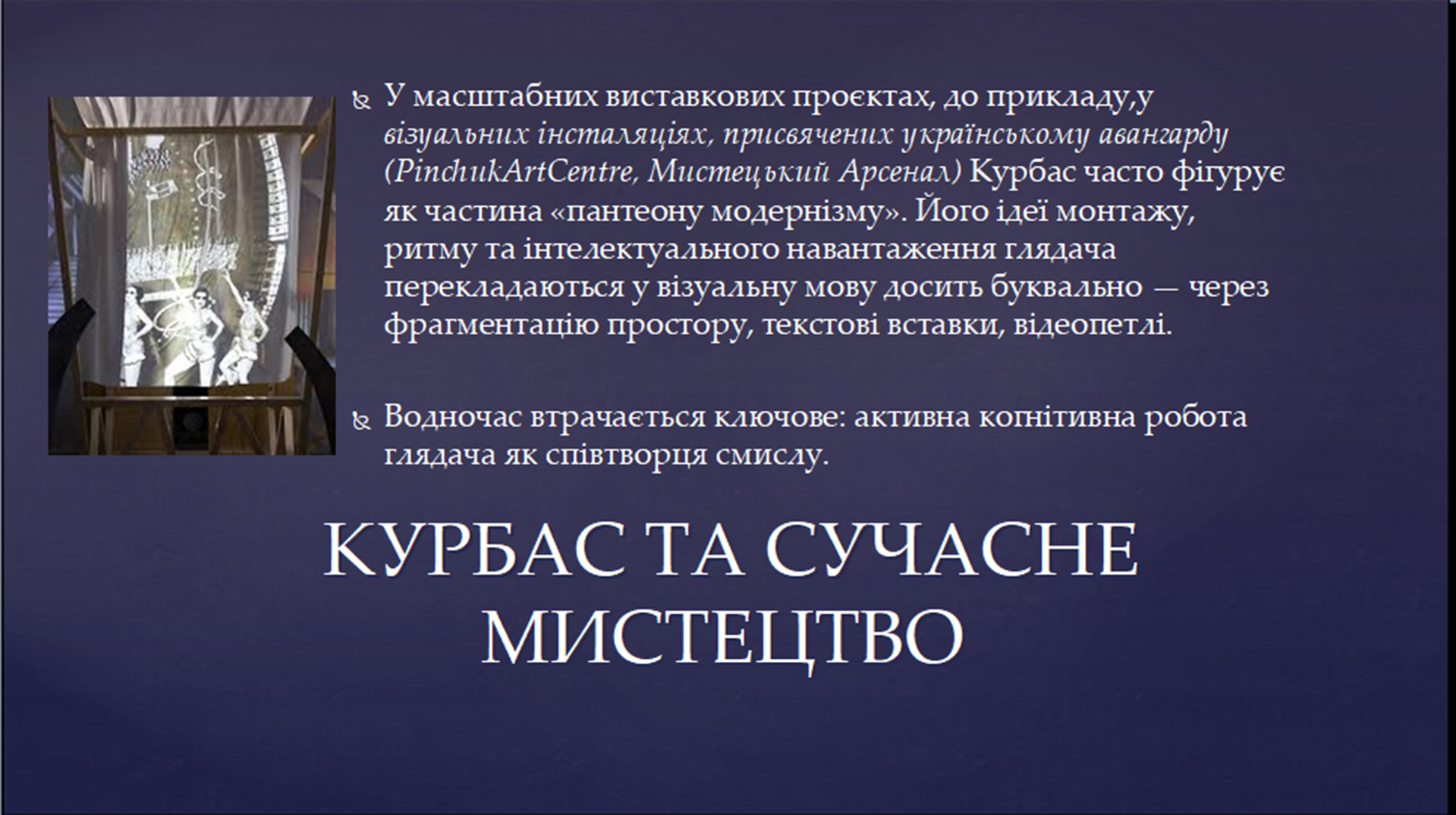 Сучасний контекст осмислення творчості митця було представлено у виступі «Акценти Курбаса: крізь століття до сьогодення» Василя Баранюка – актора Тернопільського академічного обласного українського драматичного театру імені Т. Г. Шевченка, доктора філософії, асистента кафедри театрального мистецтва Тернопільського національного педагогічного університету імені В. Гнатюка.