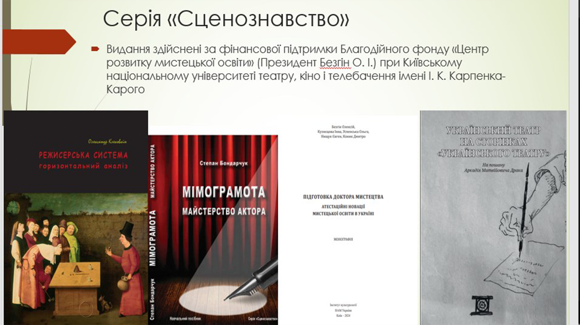 • С. Бондарчук «Мімограмота. Майстерство актора» (Харків, 2025),