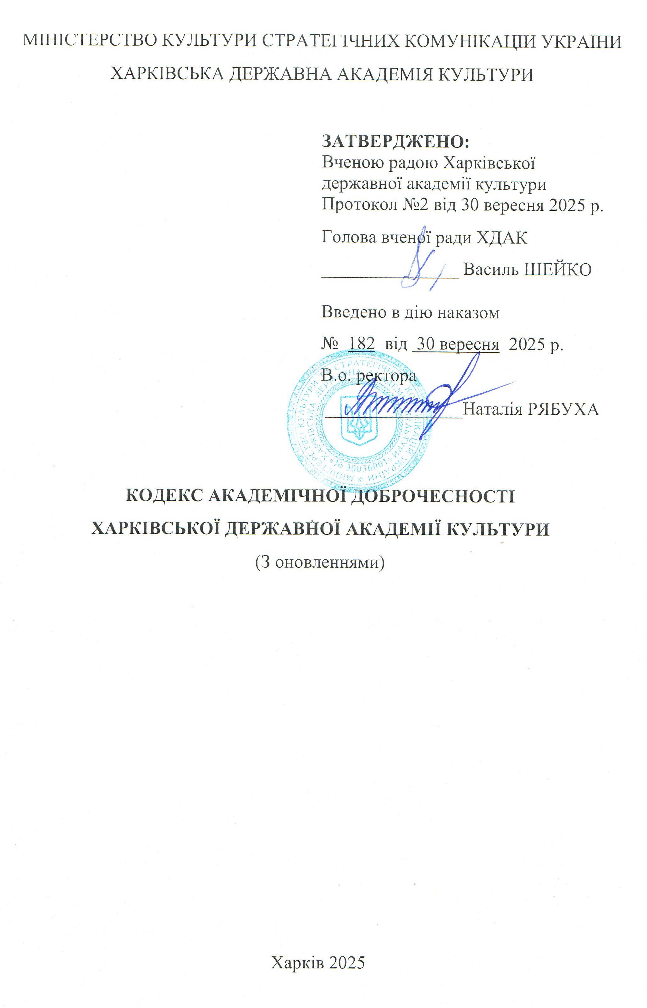 Кодекс академічної доброчесності Харківської державної академії культури (Завантажити файл)