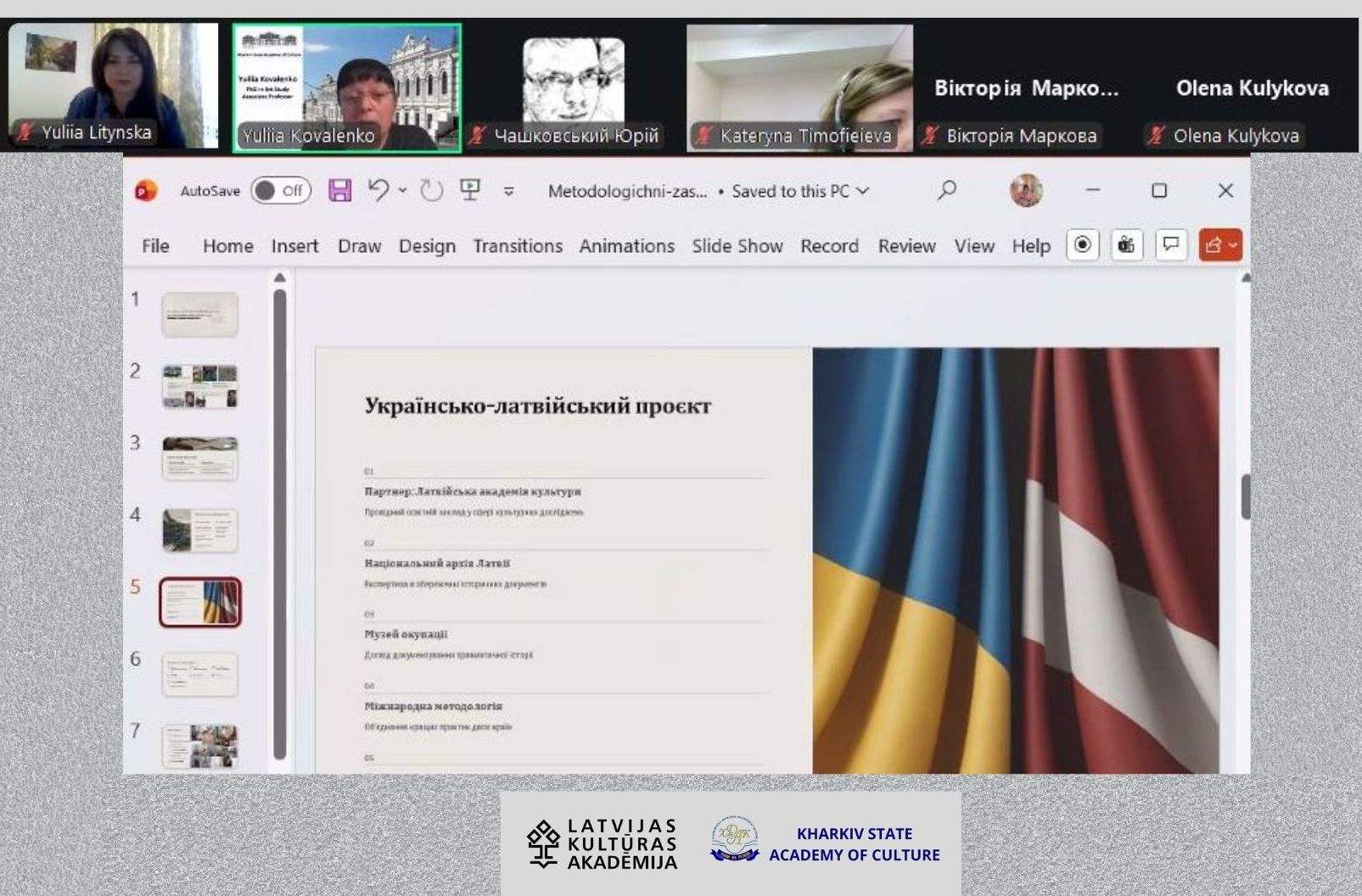 З латвійської сторони у зустрічі взяли участь Майя Спуріна та Ева Мархілевіча від Латвійської академії культури. Вони представили попередню програму вересневого Воркшопу у Ризі, яка передбачає знайомство з Латвійською академією культури, презентацію української команди про Харківську державну академію культури, а також заходи з обміну досвідом.