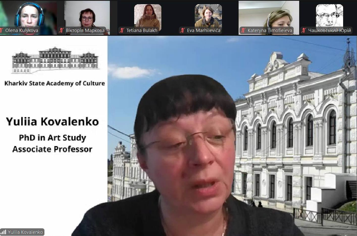 Харківську державну академію культури на зустрічі представляли науковий керівник проєкту, доцентка кафедри аудіовізуальних медіа та медіакомунікацій, кандидатка мистецтвознавства Юлія Коваленко та деканка факультету культурології та соціальних комунікацій, кандидатка наук із соціальних комунікацій, наукова співробітниця проєкту Наталя Коржик. З латвійського боку в обговоренні взяли участь наукова керівниця проєкту, професорка, доктора філософії з соціології Майя Спуріна та дослідниця, координаторка дослідницької роботи Ева Мархілевіча.