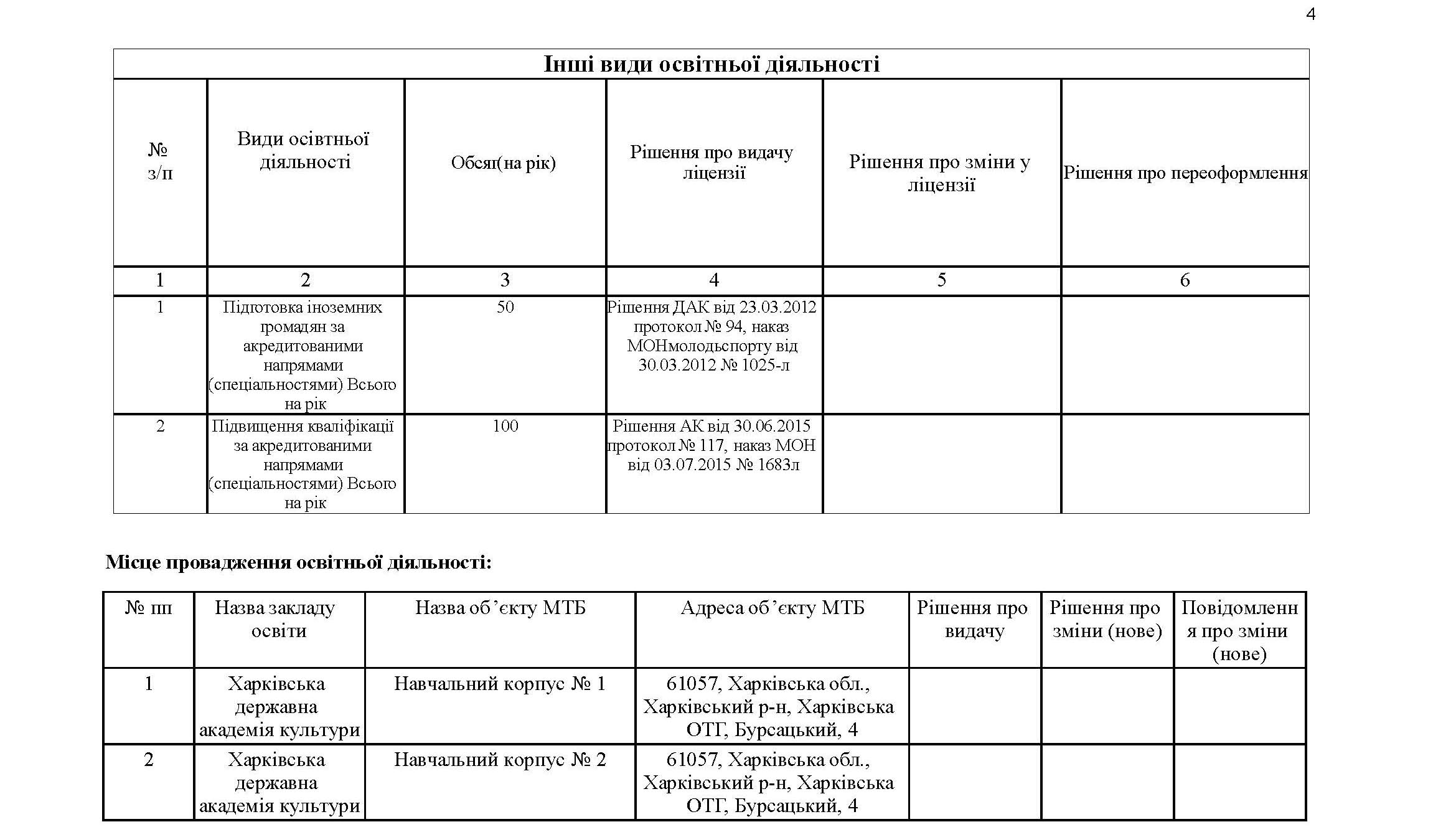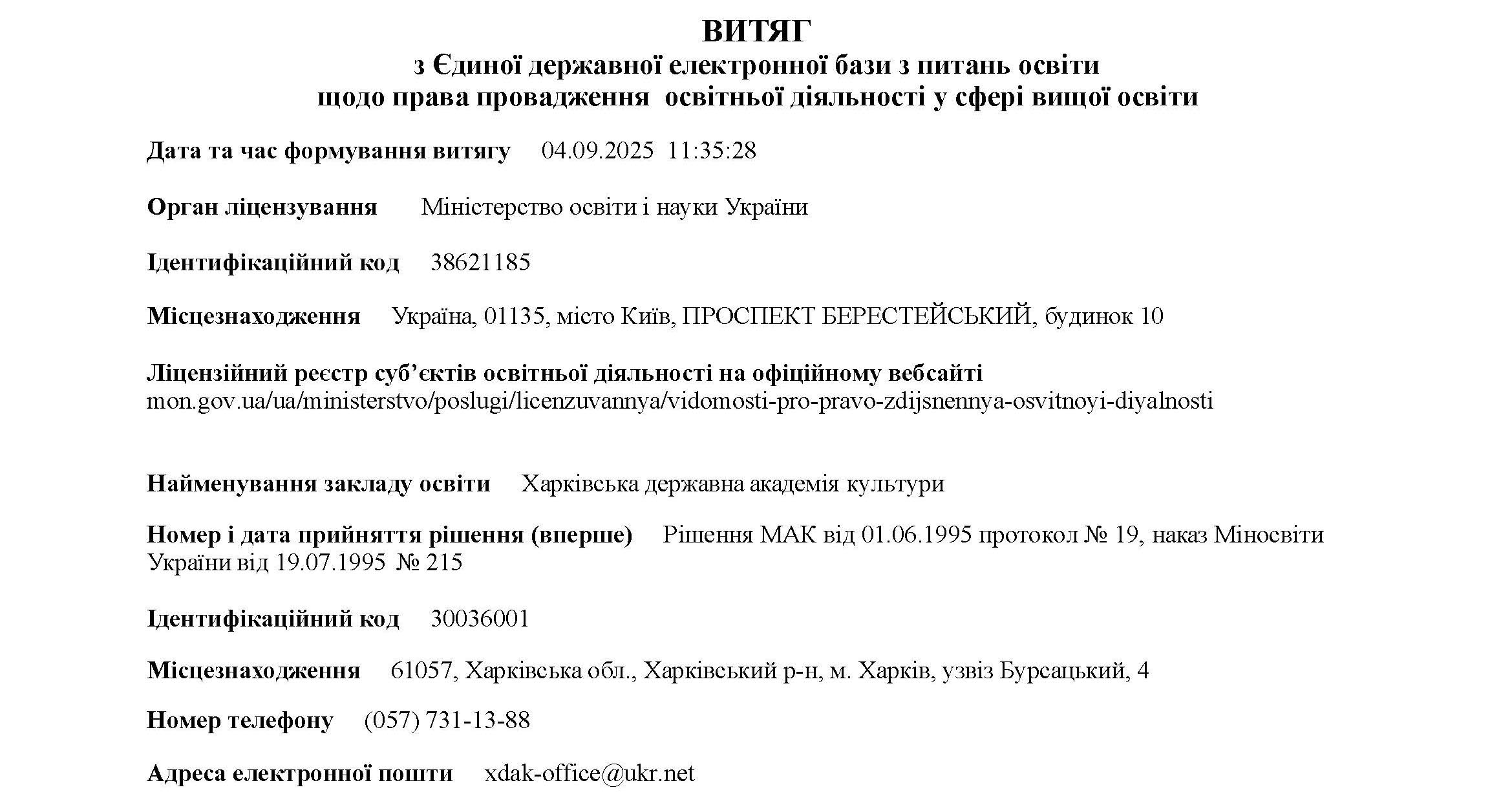 LICENSE OF THE MINISTRY OF EDUCATION AND SCIENCE OF UKRAINE