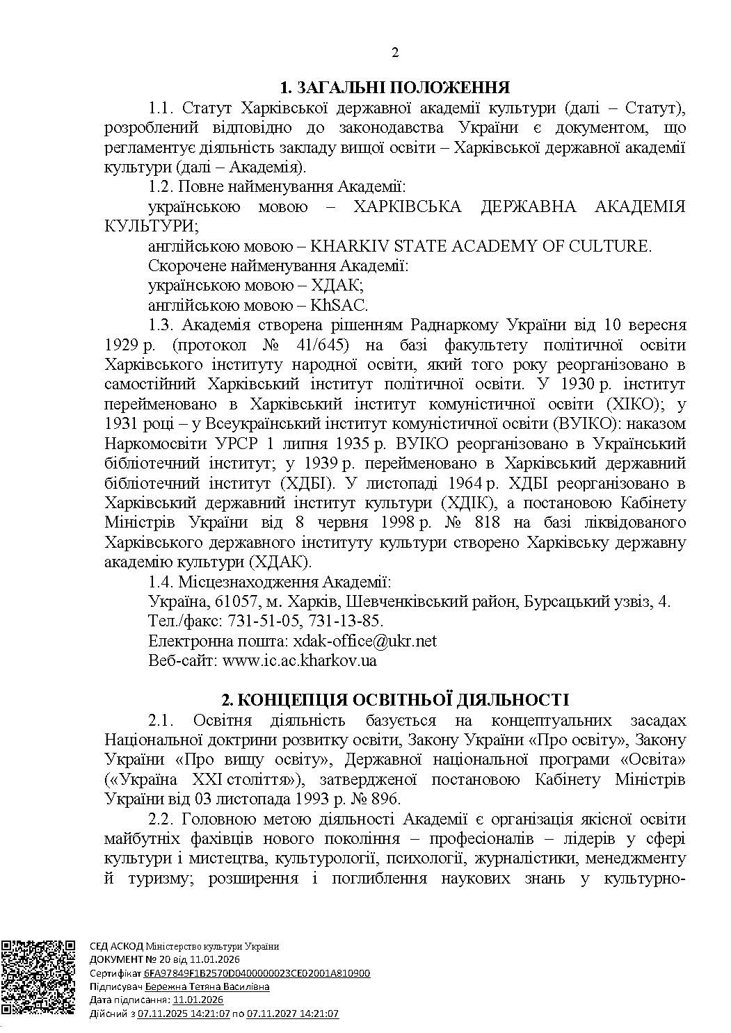 СТАТУТ ХАРКІВСЬКОЇ ДЕРЖАВНОЇ АКАДЕМІЇ КУЛЬТУРИ